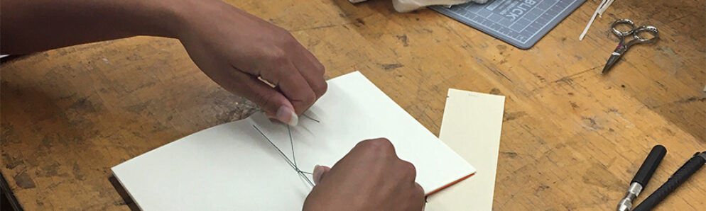 In this two-day workshop, students will get a quick introduction to various bookbinding techniques by exploring three different book structures. The class will begin with a simple pamphlet and continue with constructing two multi-signature books, known as flatback case binding and link stitch binding. Finally, students will construct a box to house all of their creations. Bookbinding 101 is a great way to familiarize yourself with bookbinding and is perfect for those who are curious about the craft. All levels of experience are welcome to register.
