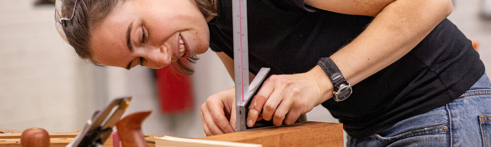 This comprehensive course builds foundational hand skills that are essential to completing many fine woodworking projects. The class is suitable for both beginners looking to jump-start a hobby in woodworking and intermediate/advanced students looking to refresh their skills. Topics include sharpening, tuning, and the use of basic hand tools, including paring chisels, hand planes, dovetail saws, card scrapers, and marking gauges; characteristics of wood and wood movement in furniture making; and cutting dovetails and mortise and tenon joinery using flat and square reference surfaces. Demonstrations and exercises develop skills such as chopping and paring with a chisel and hand planning. Traditional cabinet-making practices are explained throughout the course, and instructors emphasize how these methods can be used systematically in any woodworking project. Each student will complete a box with a sliding lid. This course focuses on handwork at the bench. Check out our Fundamentals of Machine Woodworking class if you are looking to learn more about machines. Many students take both classes. If you are just looking to get your feet wet in the shop, check out our Woodworking 101 class.