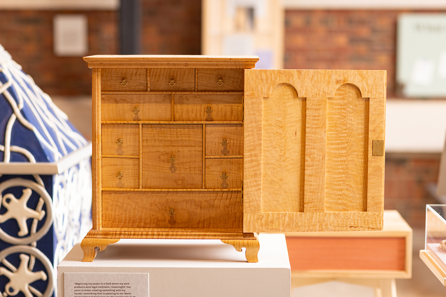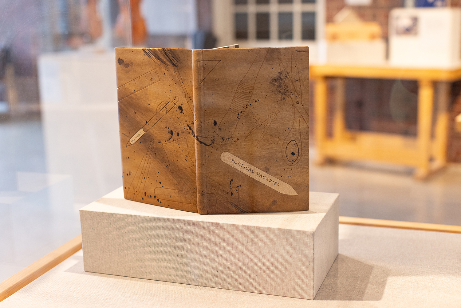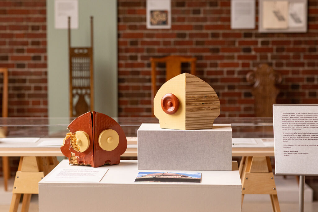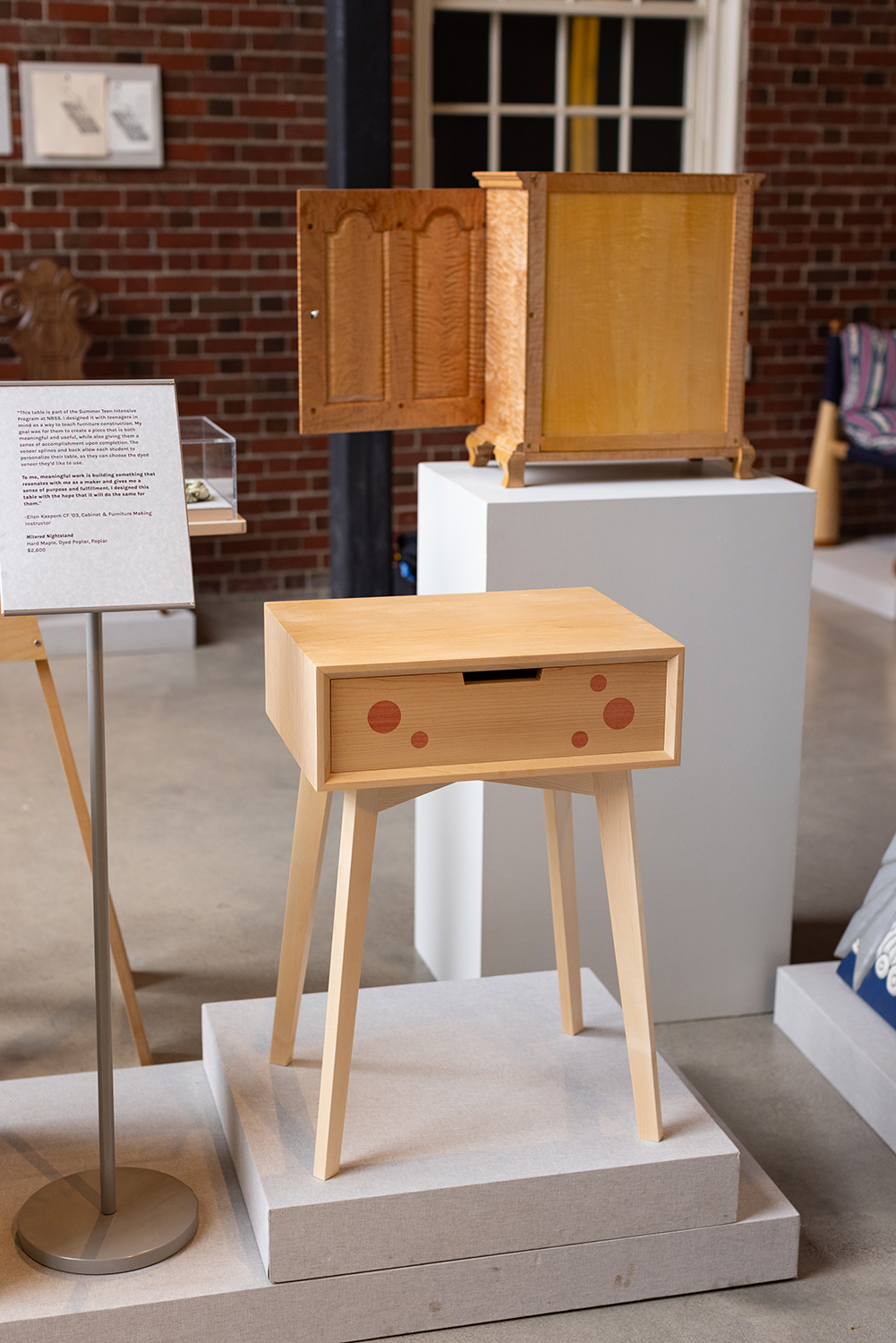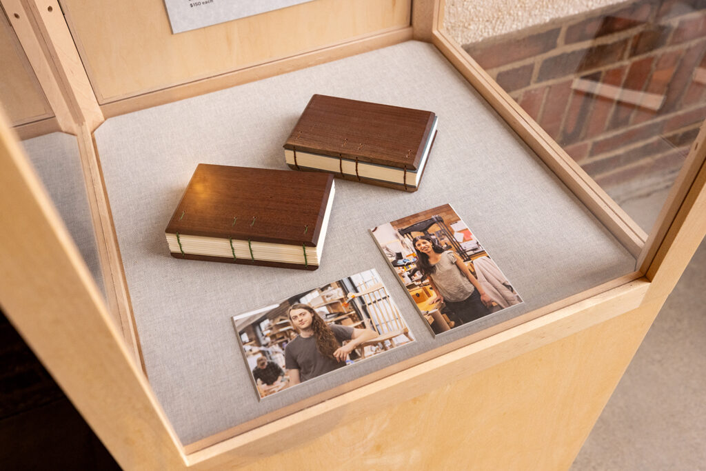 Exhibition Intro signPair of octagonal tables Alana Schwartz CF ’25Preservation models by Alex Schmidt PC ’23Pennsylvania Spice Box by Charlie Kline CF ’05Chairs by Caroline Knight CF ‘25, Matt Romick CF ’25, Alana Schwartz CF ’25, and Haniel Wides CF ’24Blanket chest and Rohlf’s Table by John Heveran CF ’25Rocket Box by Ainsley Donaldson CF ’79Mitered nightstand by Ellen Kaspern CF ’03Wooden boards coptic bound notebooks by Alex Begin CF ’23 and Ariana Rutledge BB ’22Windswept Tourmaline Ring by Geraldine Kish Perry JM ’00Monument Valley pendant by Karen Chartier JM ’03“Even Bohan” by Kalonymus ben Kalonymus, 13th century poet, bound by Elizabeth McHugh BB ’19Rocket Box by Ainsley Donaldson CF ’79Viewing the Locksmithing security camera displayClub chair by Maura Alverson CF ’25Bookbinder’s finishing press by Bob Miller CF ’11 and Yearbook reback by Carmen Torrado Gonzalez BB ’26Mushroom box by Lily Tilton CF ’23Star inlay table by Philip Lyon CF ’12Pair of octagonal tables Alana Schwartz CF ’25Art deco casepiece by Christine Ortiz CF ’24Wooden Globe by Juan Pablo Blanco CF ’12Drawings by Haniel Wides CF ’24Sterling hinge bracelet by Riley Freitas JM ’25Singapore chain necklace with garnet pendant and Garnet ring by Gigi Sui JM ’25Octagon pendant by Karen Chartier JM ’03Brass hairpin inspired by historic NBSS design by Isabelle Jensen JM ’26Stradivari model violin and Guarneri model viola by Edler Augustin VM ’25“Adam’s Adventures in the Army” bound by Johnny Carrera BB ’04“Embody / In Body, edition of 3” and “You Are Here, edition of 10” by Wendy Withrow BB ’08Notebook by Carmen Torrado Gonzalez BB ’26 (left) and “Marion Harland’s Complete Cook Book” reback repair and clamshell box (right) by Willa Anderson BB ’26Trio of sewing samples by Rachel Payne BB ’23Book, “Poetical Vagaries of the Knight of the Folding Stick” bound by Stephanie Sieverding BB ’25Book, “Poetical Vagaries of the Knight of the Folding Stick” bound by Suehade Soto BB ’25Book, “Poetical Vagaries of the Knight of the Folding Stick” bound by Laura Kraegel BB ’25Book, “Poetical Vagaries of the Knight of the Folding Stick” bound by Ash Nunez BB ’25Twisted wire ring (left) by Jasmine Barros JM ’26, and Forged gold hoops and Forged gold ring (right) by Isabelle Schmit JM ’26Live edge stool set and book, “Thomas J. MacDonald, Furniture Maker,” by Tommy MacDonald CF ’01Upholstered rocking chair by Tommy MacDonald CF ’01Blanket chest by Rob Solomon CF ’25Toolbox and mini toolbox by Zach Reynolds CF ’26Toolbox by Sarah Moreno CF ’26Custom guitar by Justin Garnache CF ’23Jewelry stand by Dee Cohen CF ’25Roundback chair and marquetry piece of Leonardo Da Vinci by Hugo Nakashima-Brown CF ’24“Rag + Pulp” bound by Jennifer Pellecchia BB ’19“Notions” bound by Willa Anderson BB ’26 (right) and by Mimi Zycherman BB ’23 (left)