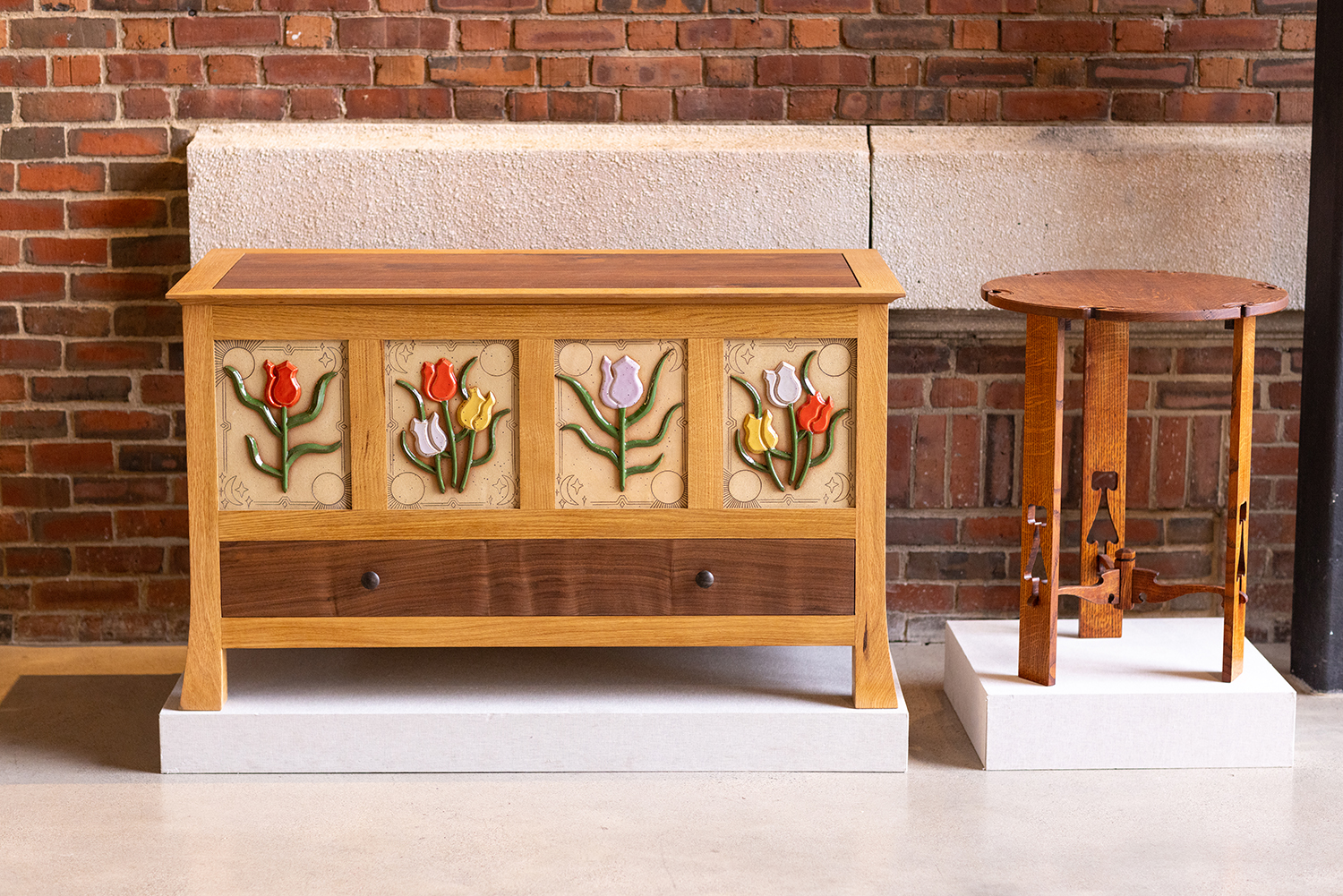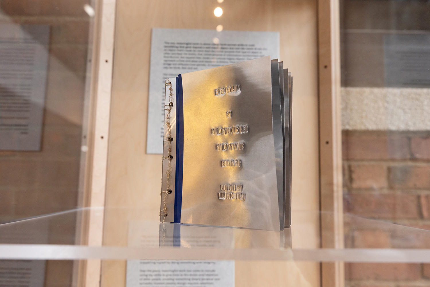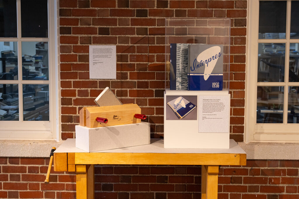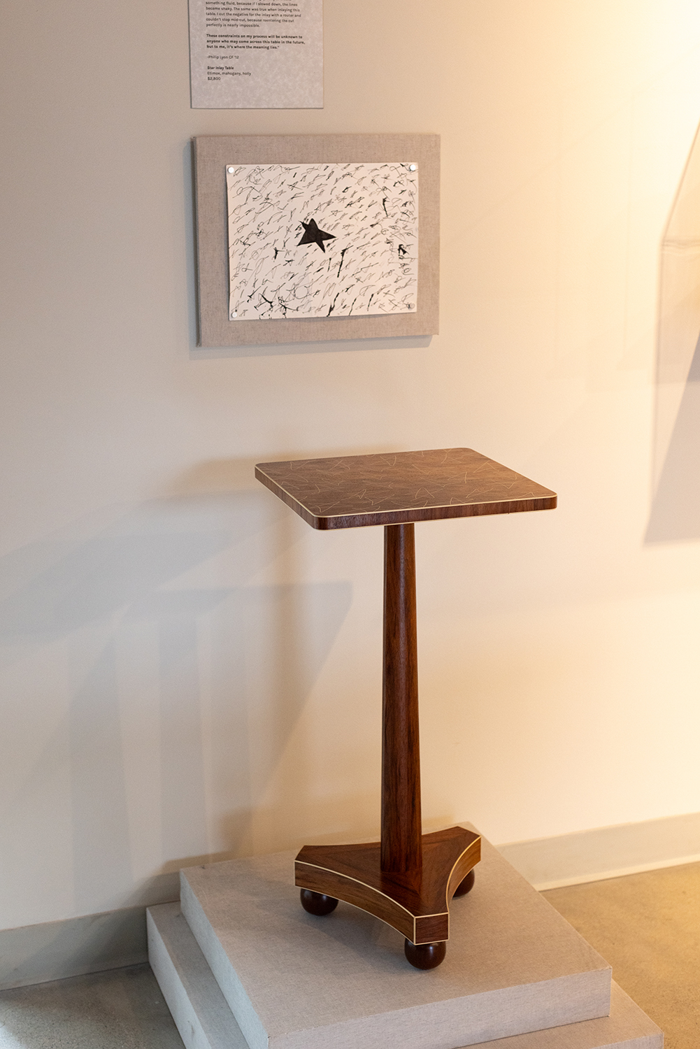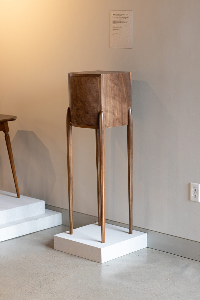 Exhibition Intro signPair of octagonal tables Alana Schwartz CF ’25Preservation models by Alex Schmidt PC ’23Pennsylvania Spice Box by Charlie Kline CF ’05Chairs by Caroline Knight CF ‘25, Matt Romick CF ’25, Alana Schwartz CF ’25, and Haniel Wides CF ’24Blanket chest and Rohlf’s Table by John Heveran CF ’25Rocket Box by Ainsley Donaldson CF ’79Mitered nightstand by Ellen Kaspern CF ’03Wooden boards coptic bound notebooks by Alex Begin CF ’23 and Ariana Rutledge BB ’22Windswept Tourmaline Ring by Geraldine Kish Perry JM ’00Monument Valley pendant by Karen Chartier JM ’03“Even Bohan” by Kalonymus ben Kalonymus, 13th century poet, bound by Elizabeth McHugh BB ’19Rocket Box by Ainsley Donaldson CF ’79Viewing the Locksmithing security camera displayClub chair by Maura Alverson CF ’25Bookbinder’s finishing press by Bob Miller CF ’11 and Yearbook reback by Carmen Torrado Gonzalez BB ’26Mushroom box by Lily Tilton CF ’23Star inlay table by Philip Lyon CF ’12Pair of octagonal tables Alana Schwartz CF ’25Art deco casepiece by Christine Ortiz CF ’24Wooden Globe by Juan Pablo Blanco CF ’12Drawings by Haniel Wides CF ’24Sterling hinge bracelet by Riley Freitas JM ’25Singapore chain necklace with garnet pendant and Garnet ring by Gigi Sui JM ’25Octagon pendant by Karen Chartier JM ’03Brass hairpin inspired by historic NBSS design by Isabelle Jensen JM ’26Stradivari model violin and Guarneri model viola by Edler Augustin VM ’25“Adam’s Adventures in the Army” bound by Johnny Carrera BB ’04“Embody / In Body, edition of 3” and “You Are Here, edition of 10” by Wendy Withrow BB ’08Notebook by Carmen Torrado Gonzalez BB ’26 (left) and “Marion Harland’s Complete Cook Book” reback repair and clamshell box (right) by Willa Anderson BB ’26Trio of sewing samples by Rachel Payne BB ’23Book, “Poetical Vagaries of the Knight of the Folding Stick” bound by Stephanie Sieverding BB ’25Book, “Poetical Vagaries of the Knight of the Folding Stick” bound by Suehade Soto BB ’25Book, “Poetical Vagaries of the Knight of the Folding Stick” bound by Laura Kraegel BB ’25Book, “Poetical Vagaries of the Knight of the Folding Stick” bound by Ash Nunez BB ’25Twisted wire ring (left) by Jasmine Barros JM ’26, and Forged gold hoops and Forged gold ring (right) by Isabelle Schmit JM ’26Live edge stool set and book, “Thomas J. MacDonald, Furniture Maker,” by Tommy MacDonald CF ’01Upholstered rocking chair by Tommy MacDonald CF ’01Blanket chest by Rob Solomon CF ’25Toolbox and mini toolbox by Zach Reynolds CF ’26Toolbox by Sarah Moreno CF ’26Custom guitar by Justin Garnache CF ’23Jewelry stand by Dee Cohen CF ’25Roundback chair and marquetry piece of Leonardo Da Vinci by Hugo Nakashima-Brown CF ’24“Rag + Pulp” bound by Jennifer Pellecchia BB ’19“Notions” bound by Willa Anderson BB ’26 (right) and by Mimi Zycherman BB ’23 (left)