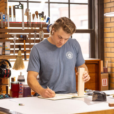 While studying Cabinet & Furniture Making at NBSS, Morgan Fog CF ’24 continued measuring and rigging high-performance sailing vessels. After graduating, he combined both skills—measuring racing yachts along the East Coast and building furniture in his custom container workshop—creating a lifestyle and shaping a livelihood that supports both.