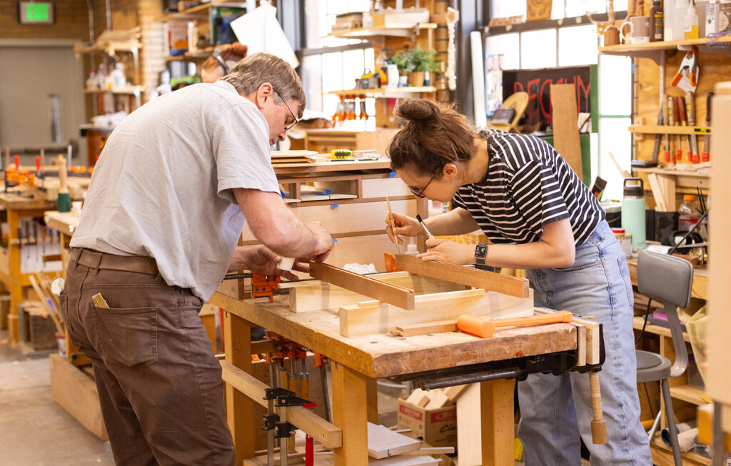 While figuring out next steps after my break from architecture school, I took a woodworking Community Education (CE) class with Ellen Kaspern CF ’03, who is also an instructor in the full-time Cabinet & Furniture Making (CF) program. At that time, I didn’t have any grander goals other than getting comfortable in a woodshop. But the way that she taught that class and the focus on high attention to detail did something to me. At one point, she took us upstairs and showed us the work being done in the full-time CF program.