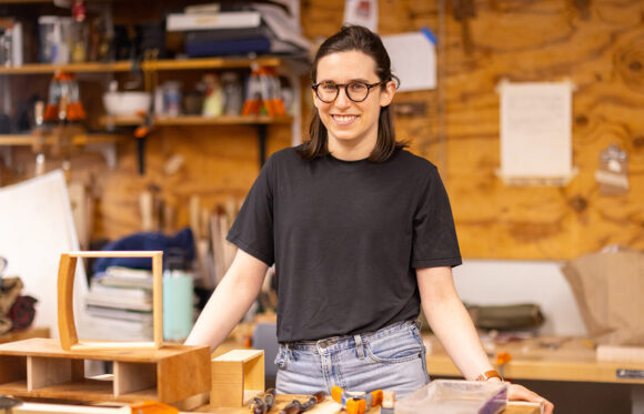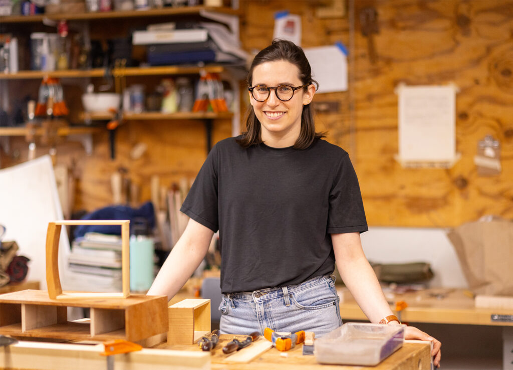 While attending an architecture master’s program, Alana realized she loved architecture, but wasn’t going to love being an architect. Before pivoting to graphic design and marketing, Alana took a woodworking Community Education class at North Bennet—and never shook the feeling it was where she was meant to be. Eight years later, she returned to North Bennet.