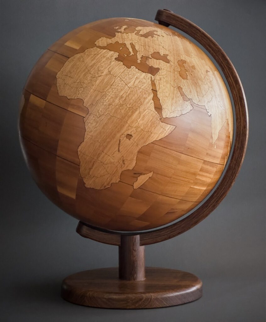 Wooden Globe by Juan Pablo Blanco CF ʼ12, made in 2024