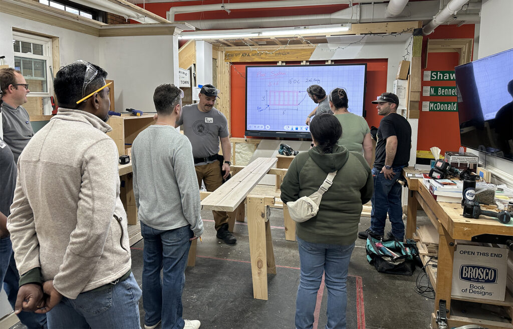 “Instructors can quickly jump into Google Classroom and pull up diagrams or notes,” says Brock Leiendecker PC ’16, Carpentry Instructor. “We can pre-plan lessons the night before, and in the morning, they are ready to go on the smart board. We can also access lined pages and grid sheets. We just completed our stair lesson, and I was able to create a set of stairs that was not just pencil-drawing shapes. That gave the students a better visual.”