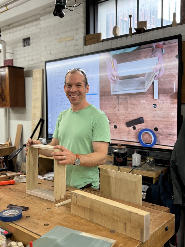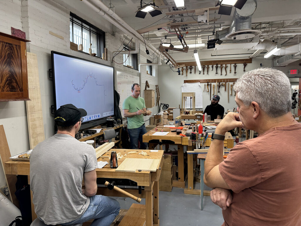 This comes in handy in the Three-Month course, which focuses in the early weeks on perception and getting the instructor and student on the same page. Eli explains, “When working on dovetails or other joints, we usually hold our work up to the light to check if a flicker is coming through, which would mean there is a space in the joint. I can now use a camera and show the students that sliver of light, huge on the screen: ‘This is what I’m seeing. Are you seeing that?’”
